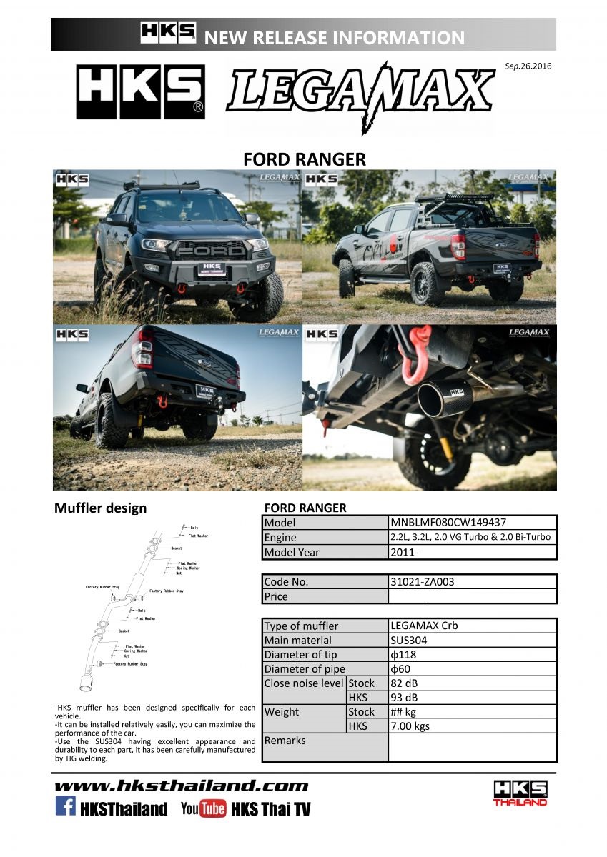 HKS LEGAMAX CRB FORD RANGER 2.2L & 3.2L